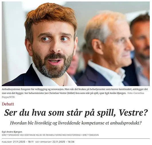 26/11/2025Ser du hva som står på spill, Vestre?Les merHvordan ble livsviktig og livreddende kompetanse et anbudsprodukt?